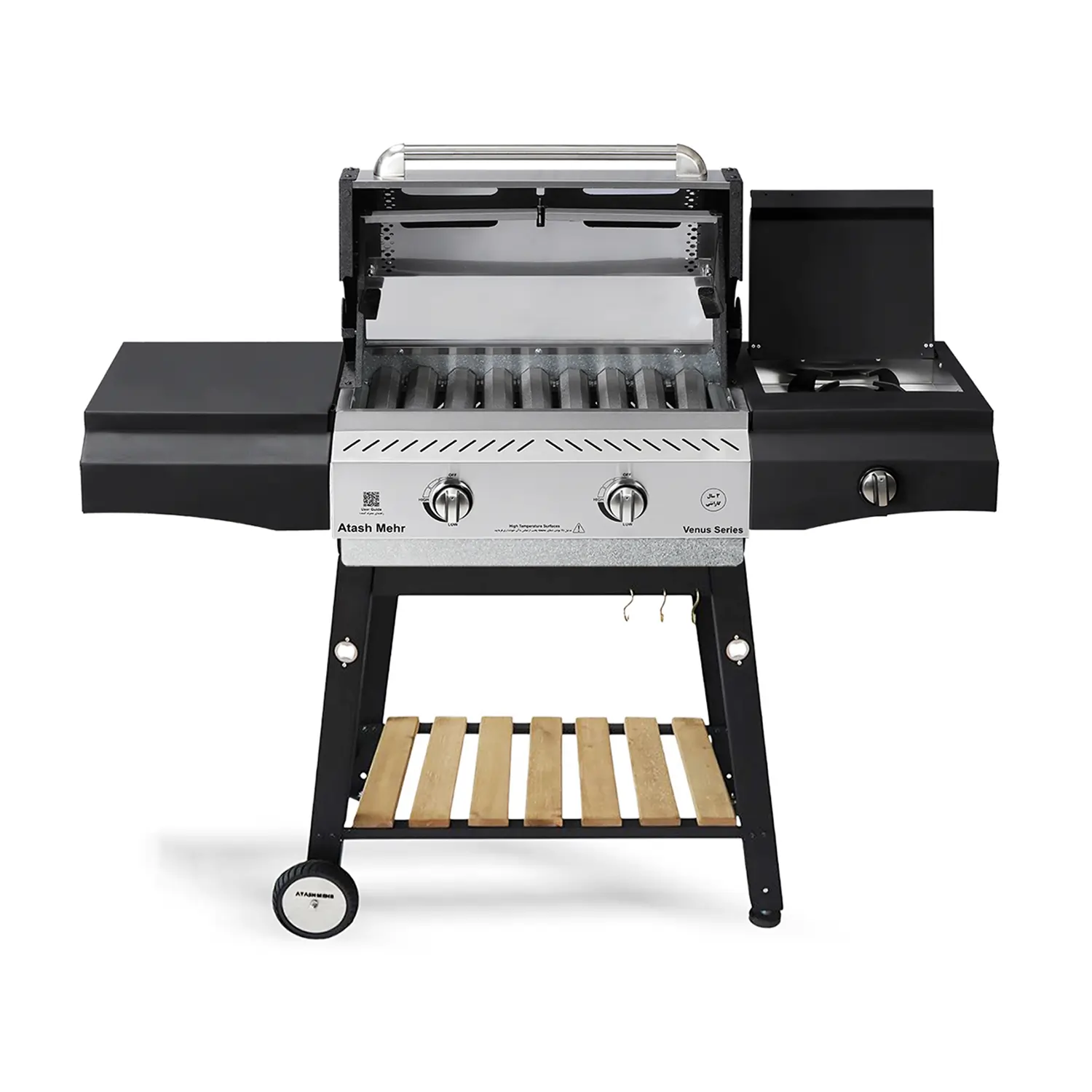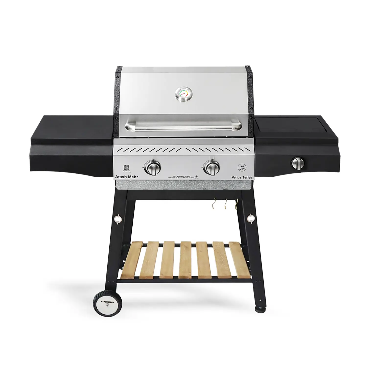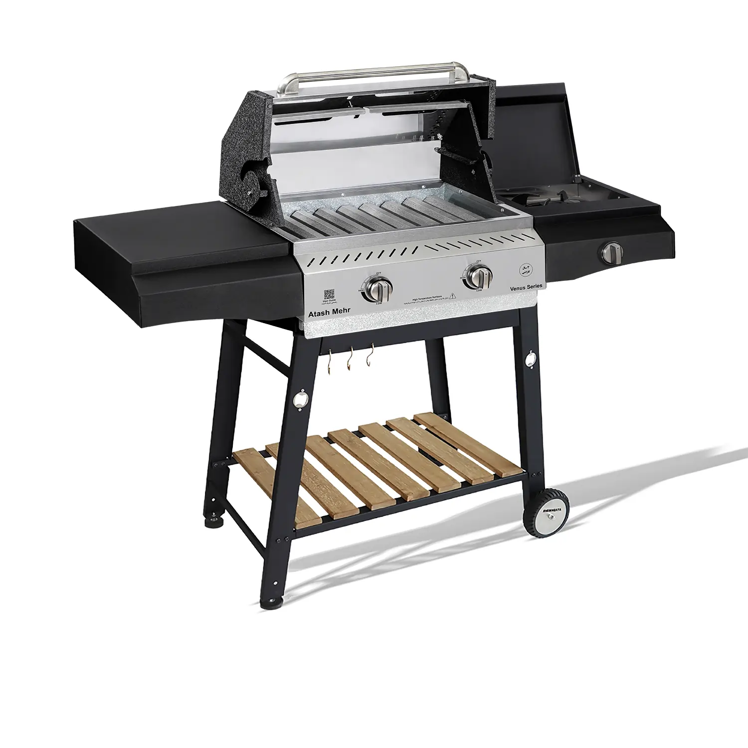 باربیکیو گازی افروزش اکو 102 با ۹ شعله قدرتمند، اجاق جانبی و میز کار، تجربهای کامل از پختوپز را برای شما فراهم میکند. طراحی مدرن، متریال باکیفیت، درب دوتکه و پایهی چرخدار، این محصول را به انتخابی شیک و کاربردی برای فضاهای باز تبدیل کرده است.