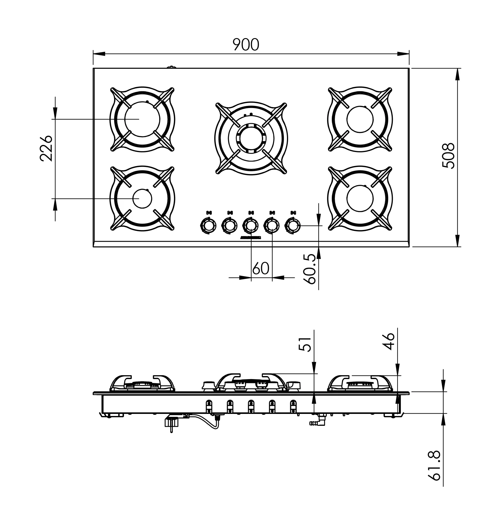 اجاق گاز رومیزی آتش مهر دارای صفحه شیشه ای مقاوم در برابر ضربه و حرارت میباشد. این اجاق گاز ۵ شعله دارد، قرارگیری شعله پلوپز در وسط سبب شده شده است تا استفاده ار قابلمههای بزرگ فراهم گردد. جنس سرشعله این اجاق گاز از چدن لعاب کاری شده ضد زنگ میباشد.